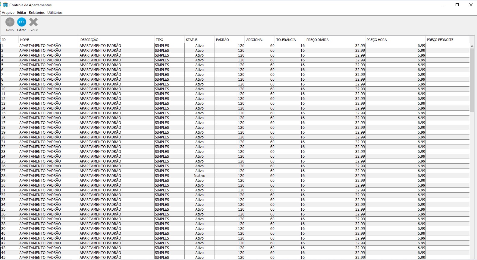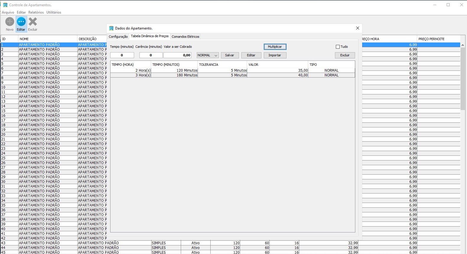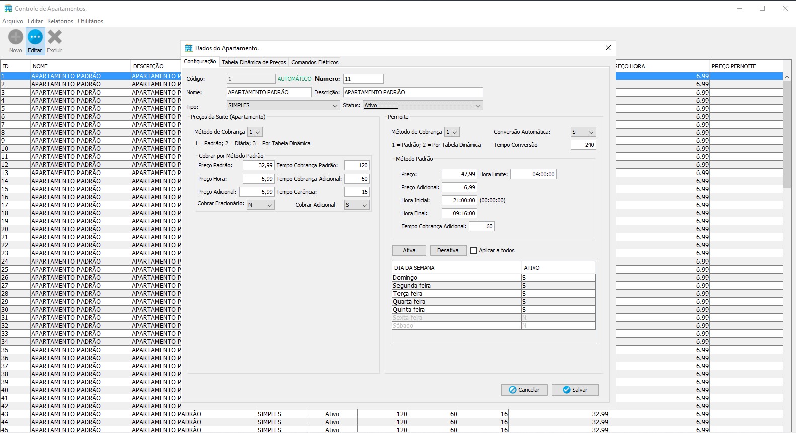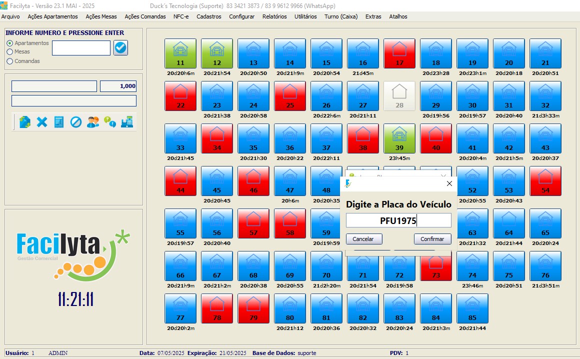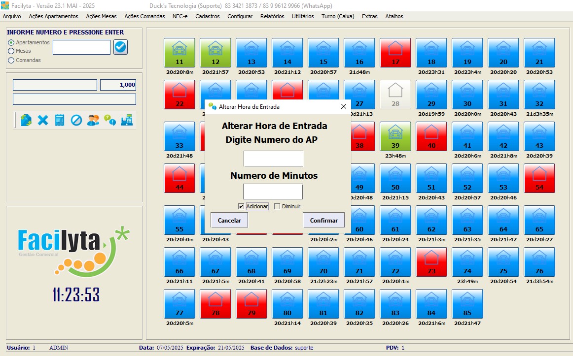 Na tela principal, você tem total visão e controle sobre os apartamentos, onde todas as funções podem ser executadas através de cliques simples e intuitivos. Onde você pode definir cores especificas para cada situação do apartamento